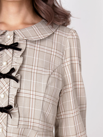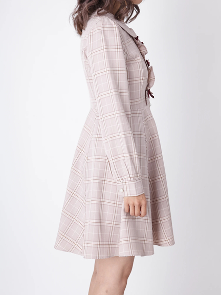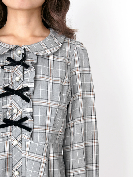 フロントリボンチェックワンピース