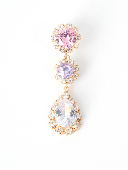 お顔まわりを可愛くクラスアップするピアスのお目見えです♪ 存在感バツグンのビジューは、ティアドロップデザインもONされ、鮮度感がたっぷり◎ いつものコーデにONするだけで、華やかな雰囲気を演出してくれます。歩くたびに揺れ動くシルエットが、魅力的なオススメアイテムです☆