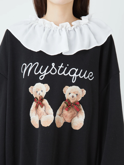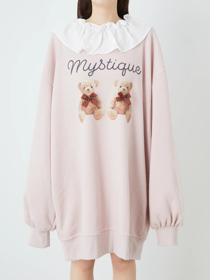 首元にチェックリボンをONしたツインベアがアクセントになって、愛らしさバツグンのルックスを叶えるプルオーバーの登場です♪ ボディーラインをすっぽりと包み込むオーバーシルエットが、女の子らしい華奢見せをメイク◎ スリーブもボリュームがあって可愛く、ガーリーな雰囲気を演出します。くしゅくしゅっとした衿が、お顔まわりを華やかにし、フェミニン度も高まるオススメの逸品です☆