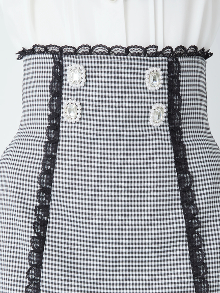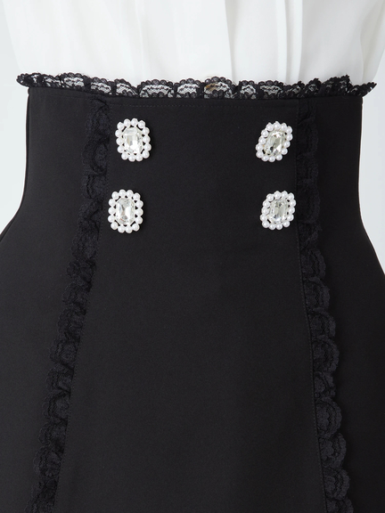 スクエアビジューが付いて、ガーリームードが高まるハイウエストスカートの登場です♪ ウエストには、パールモチーフが付いたビジューがほどこされて、上品&可愛らしく、スタイリングの好アクセントとして、映えます。ウエスト部分に、幅があり、裾に向かって流れるようなシルエットが、女の子らしさを演出◎ フレアなラインで、脚見せをキレイに叶えてくれます☆