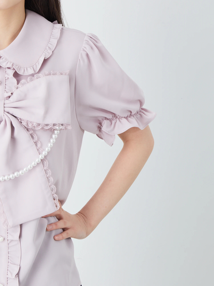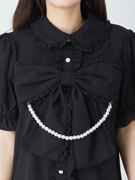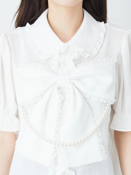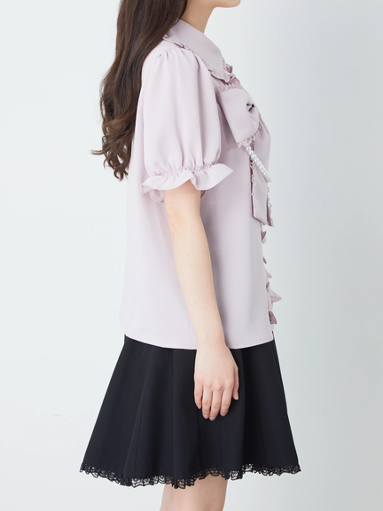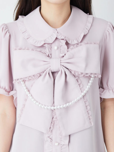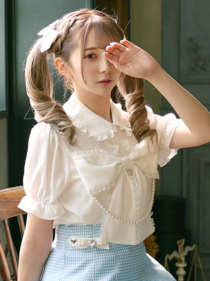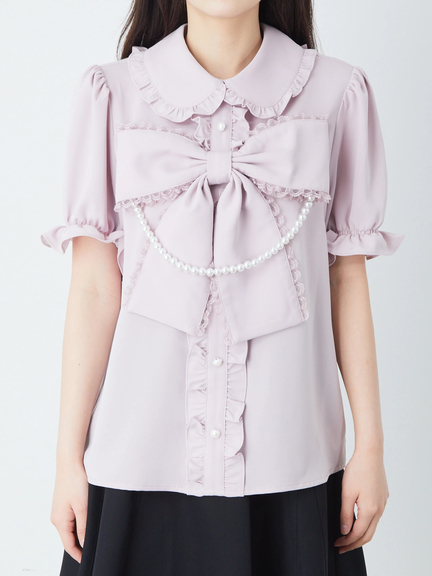 Bigリボンが付いて、ガーリーニュアンスが加速するブラウスの登場です♪ 胸元に、大きなリボンがほどこされて、可愛らしく、スタイリングをアップデートしてくれます。パール調モチーフもあしらわれて、上品さもプラス◎ 身頃はほどよく、女の子らしさがあふるスタイルが楽しめるアイテムです☆