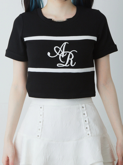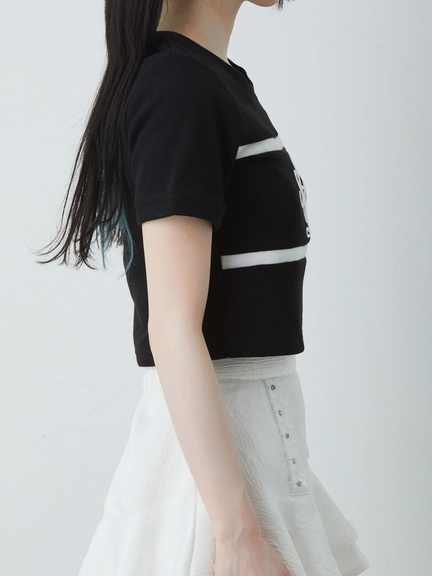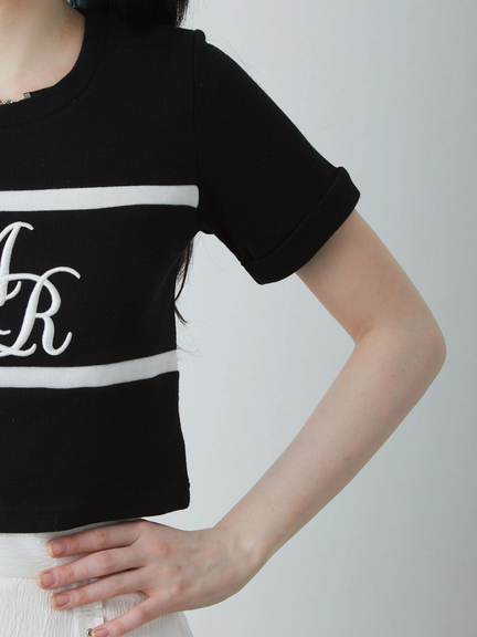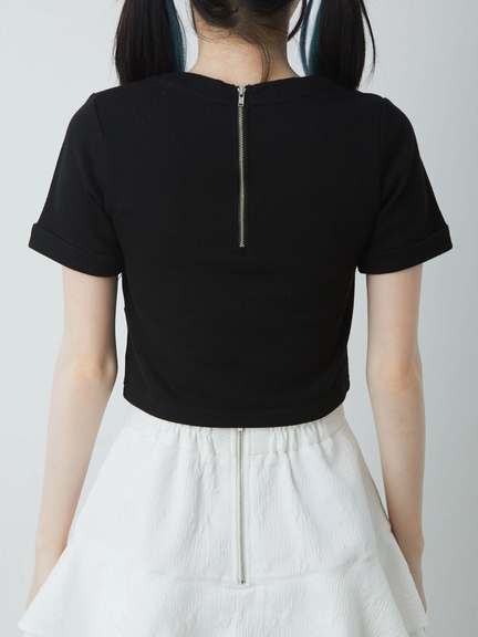 モノグラムロゴで、ガーリームードが高まるチビTOPSの登場です♪ フロントに、モノグラムロゴのデザインが、あしらわれて、洗練された好アクセントとして、着映えします。後ろには、ジップ使いが、ほどこされて、スパイシー&着脱のしやすさも◎ 着丈が短く、コンパクトなシルエットで、旬な女の子スタイルを楽しめるアイテムです☆