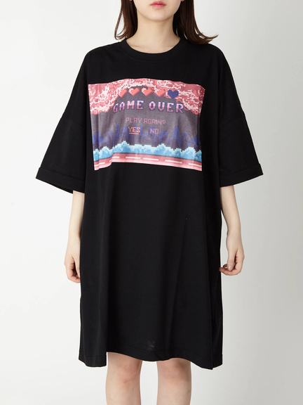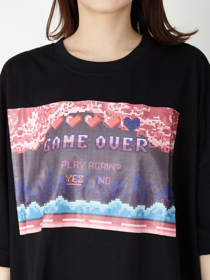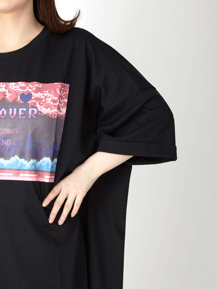 8Bitゲームプリントが胸元にデザインされたユニセックスBigTeが登場です♪ 大きくプリントされたプリントが、カジュアルなアクセントになって◎ ビックシルエットのサイズ感で、ワンピースように一枚着風でスタイリングするなど、旬顔へと導いてくれる逸品です。これからの季節にマッチして、クローゼットで活躍が期待できます!