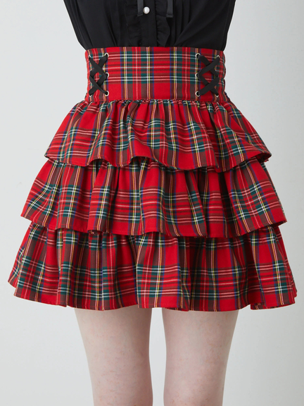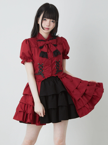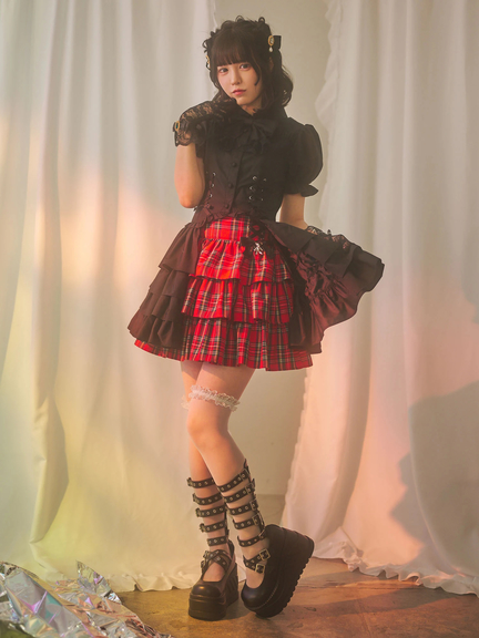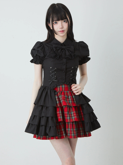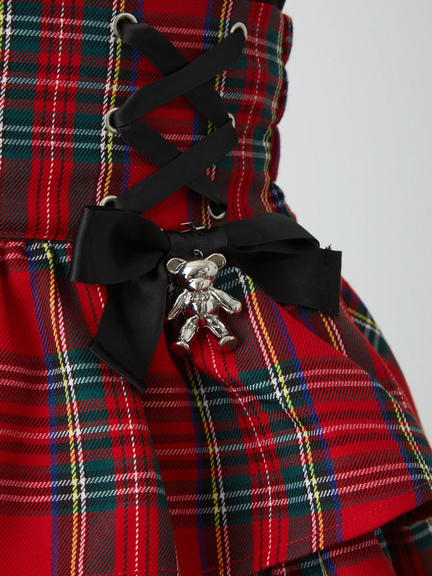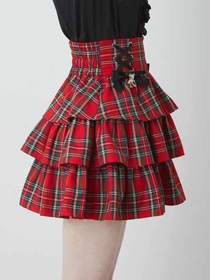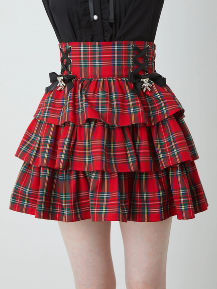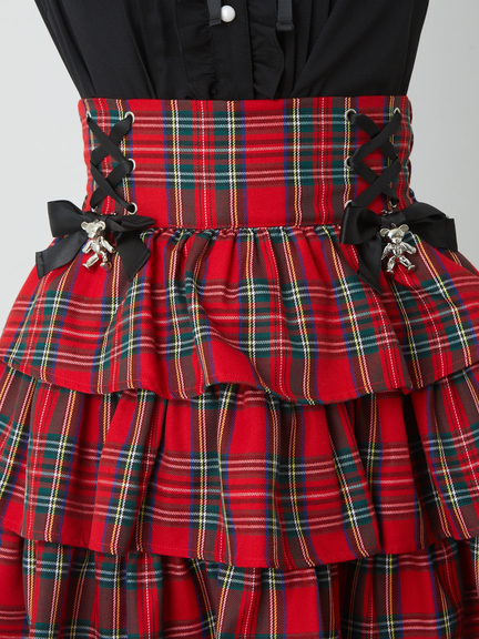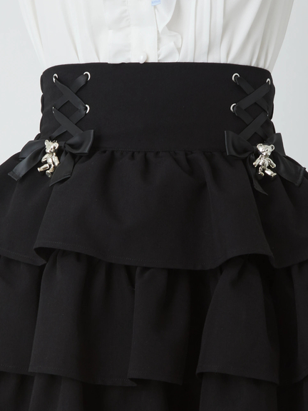 くまちゃんリボンで、ゴシックガーリーなムードが高まるティアードスカパンのお目見えです♪ ウエストに、くまちゃんリボンが、ONされて、キュートで、好アクセントに、映えます。ハイウエスト仕様で、シェイプされて、メリハリが付き◎ ティアードのボリュームあるミニ丈のシルエットながら、スカパンタイプで、アクティビティにも、ぴったりな逸品です☆