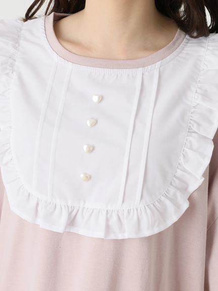 着心地バツグンのスウェット素材に、愛らしいヨークがあしらわれたカジュアルスイートなトップスのお目見え! 縦に並んだパールボタンがアクセントになり、ケープとブラックリボンは取り外し可能で、気分によって表情を変えられる好デザインです♪ ボリュームたっぷりのシルエットは、ボディーラインをカバーし、華奢見せをメイク◎ ワンピのように一枚で着こなすのがオススメです!
