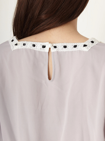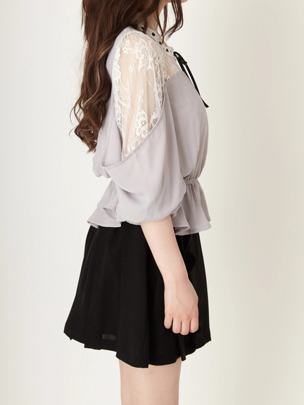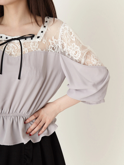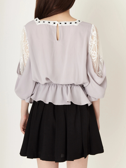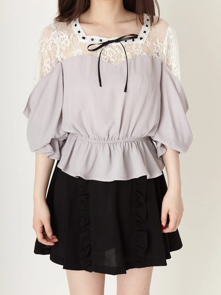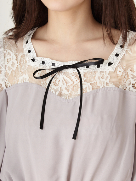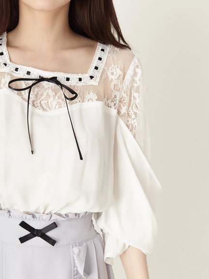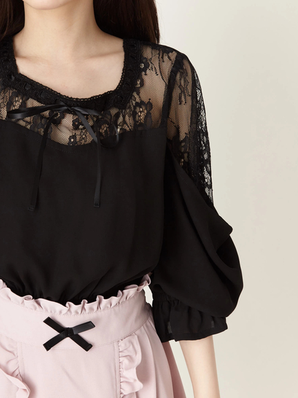 レース切り替えがガーリームードを盛り上げるハシゴレースブラウスがお目見えです♪ デコルテからショルダーまわりのレース使いが、華やかさをプラスして◎ リボンにハシゴレースもほどこされて、ディティールも可愛さ十分です☆ ボリューム感のあるショルダーも甘さを演出できて、レディーな雰囲気も漂い、クローゼットで活躍する逸品です!