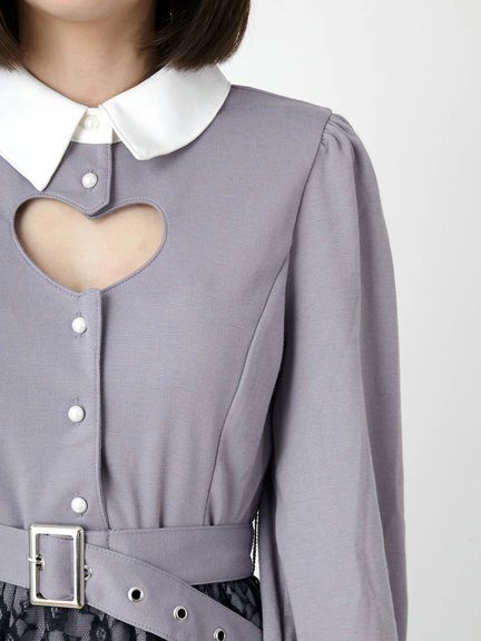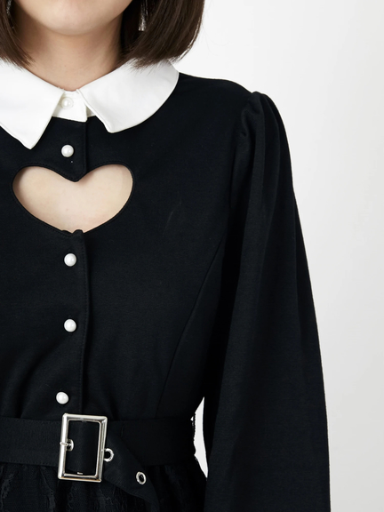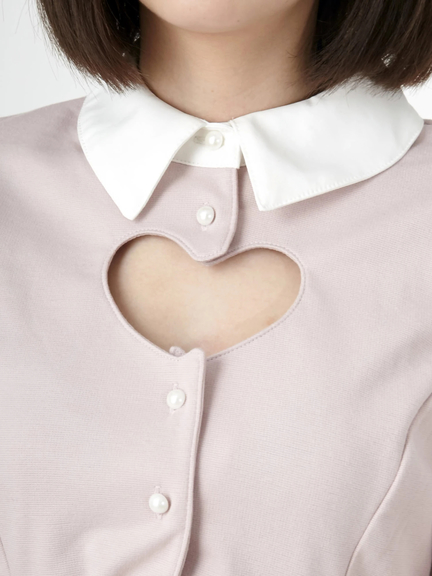 抜け感たっぷりで、大人ガーリースタイルを叶えるハートあきカットマキシワンピースのお目見えです♪ 真っ白な襟元と、パールボタンの組み合わせが、上品な逸品◎ 胸元のハートカットが、キュートさをプラスします。ハイウエスト仕様で、腰高にマークできるので、自然とスタイルアップも叶います。裾の透け感もトレンド感があって、こだわりのディティールがつまった逸品です!