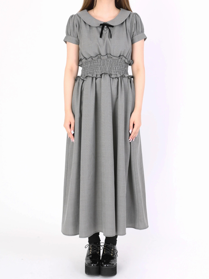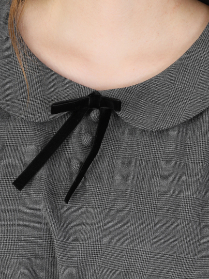 旬顔のグレンチェックで、グッとレディームード盛り上がるロングワンピースの登場です☆ 乙女心をくすぐる丸襟に、取り外し可能なブラックリボンが、スタイリングの締め役にぴったり! 存在感のあるウエストシャーリングで、自然と腰高の位置をマークします◎ 裾の広がりを抑えたシルエットは、脚長効果バツグンで、厚底シューズとも相性バッチリです。