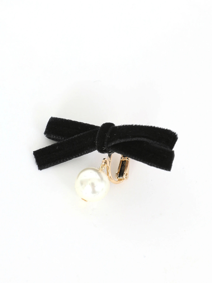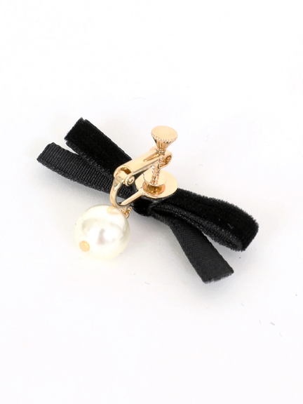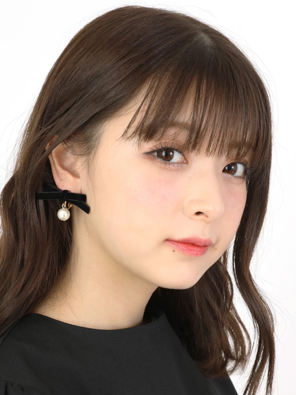 ベロアリボン×パールイヤリング