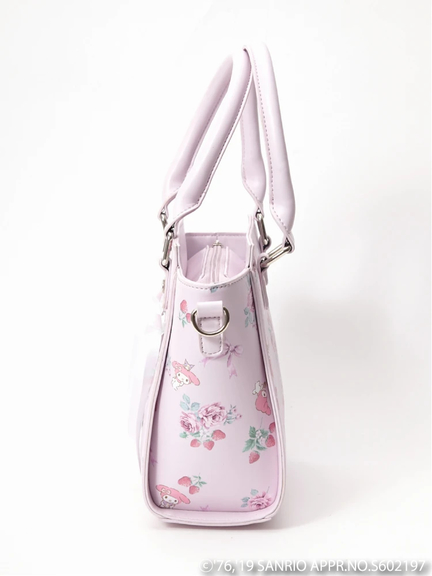 人気キャラクターマイメロディとのコラボバッグがお目見えです♪ 花柄とマイメロディのプリントが全面にあしらわれ、可愛さあふれるアイテム◎ 上品なスクエアシルエットに、フロントのスピンドルリボンがプラスされ、乙女心をくすぐる好ディテールです♪ 取り外し可能なショルダーが付き、気分に合わせてスタイリングが楽しめます♪