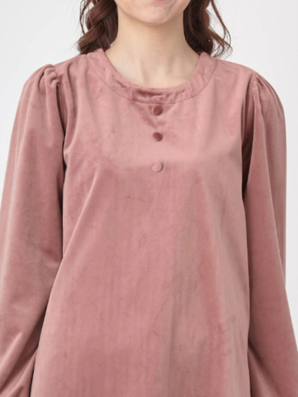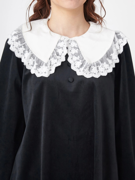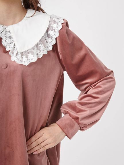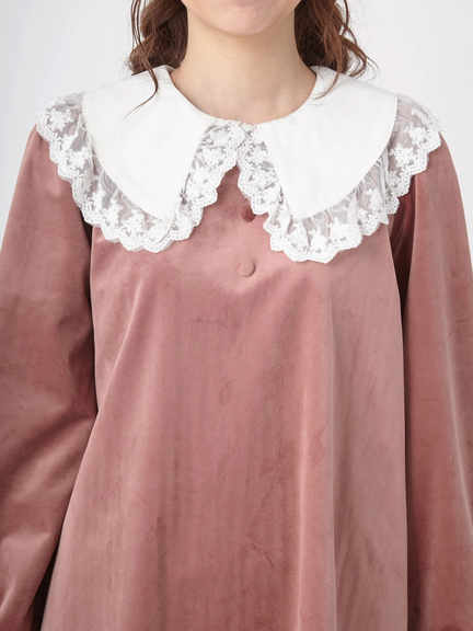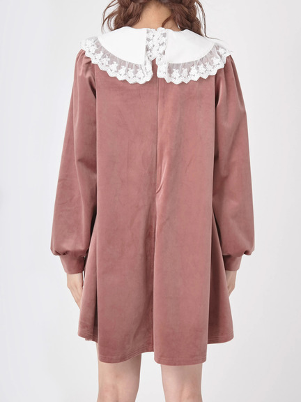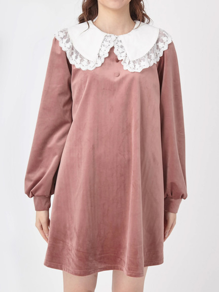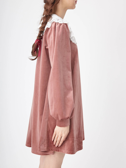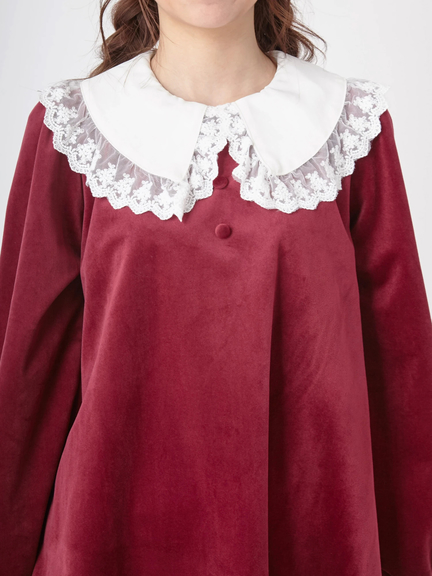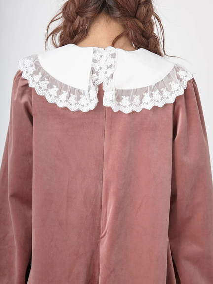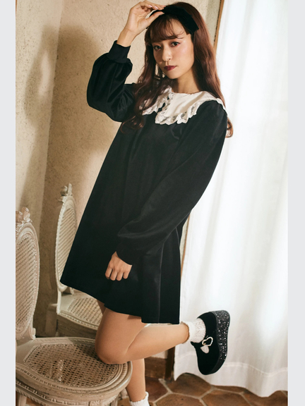 清楚なドーリースタイルを叶えるレースカラーベロアOPのお目見えです♪ スッキリとしたシルエットに、ふわっとしたパフスリーブがアクセントになり、可愛らしさが加速◎ 存在感抜群の襟をONすれば、キュートさがグッとアップします。ベロア素材がシーズンらしく、これからの季節ワードローブで、活躍間違いなしの一枚です☆