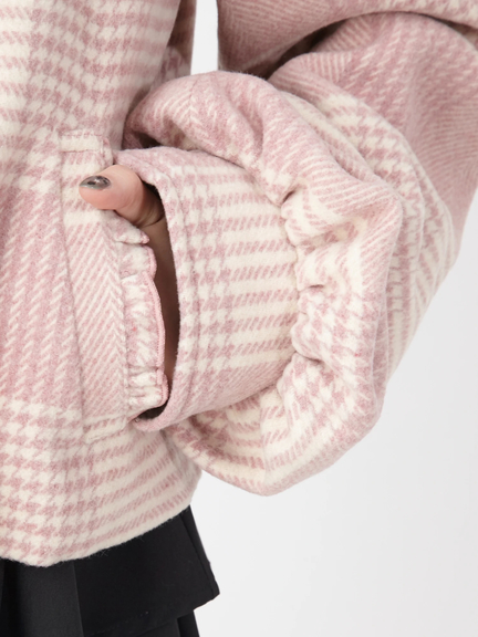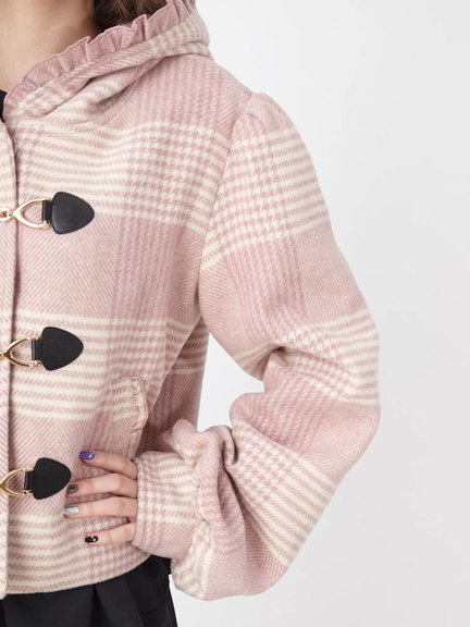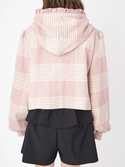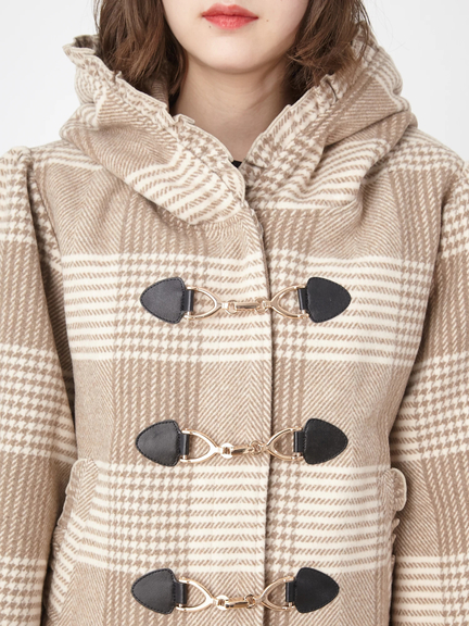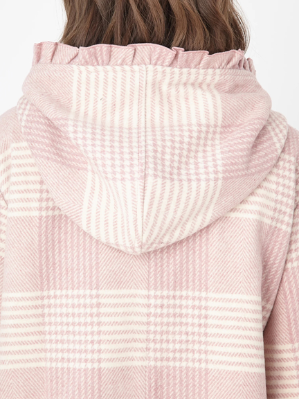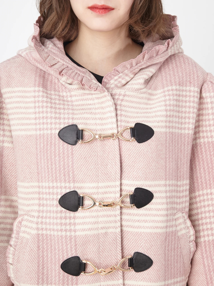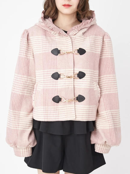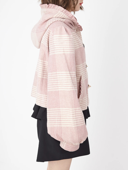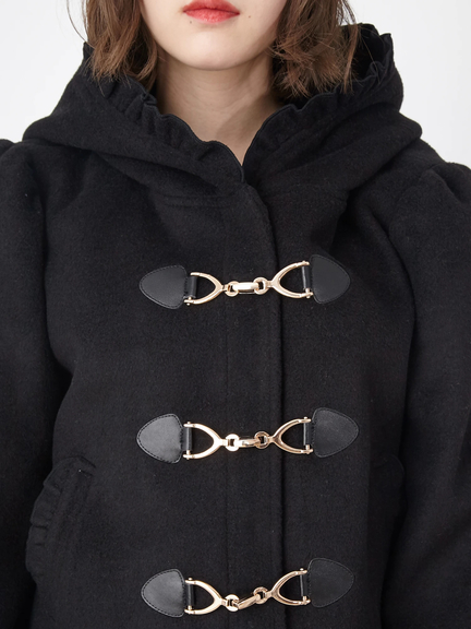 キュートなエッセンスがつまったショートダッフルのお目見えです! フリルをほどこしたフードは、存在感があり、顔まわりをコンパクトに見せてくれ◎ 着丈は短めに仕上げ、ボリュームたっぷりのスリーブが、メリハリのあるシルエットを叶えます。ミニ丈のボトムスや、ワンピースと相性がよく、まわりと差がつく注目アイテムです♪
