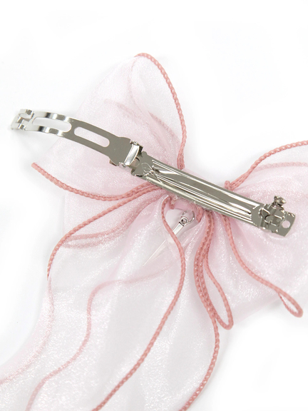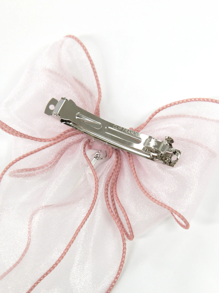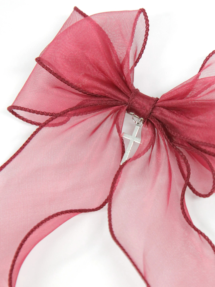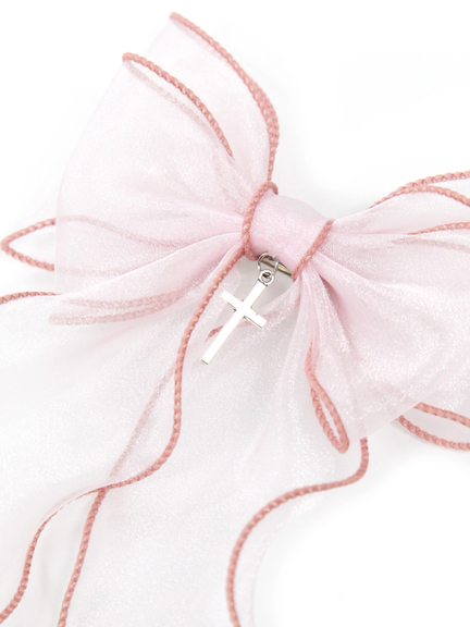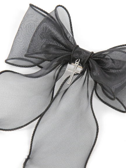 いつものヘアスタイルを華やかに彩るオーガンジーリボンバレッタの登場です☆ エアリー感のあるオーガンジー素材で、重くなりすぎず、さまざまなスタイルと好相性◎ ちょこんとあしらわれたクロスモチーフが、クールなエッセンスをプラスします。トレンドに左右されないルックスで、春先まで使える注目アイテムです!