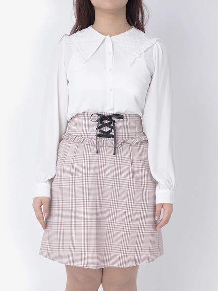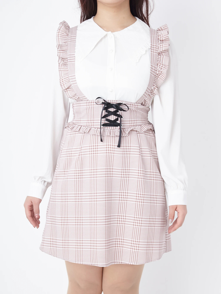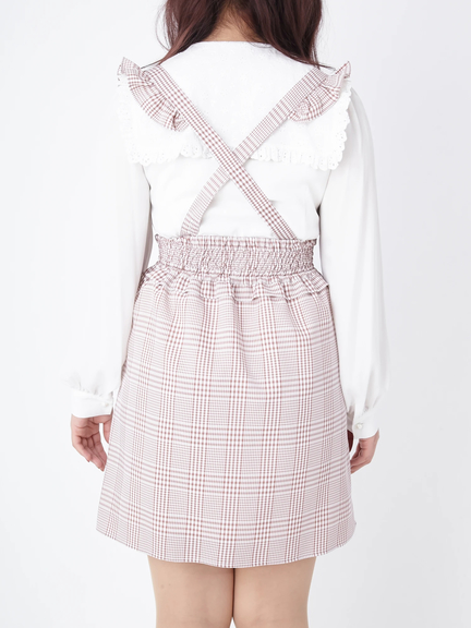 スピンドルのデザイン入りで、旬なガーリースタイルを叶えるサススカートの登場です♪ ハイウエストの位置に、スピンドルがほどこされて、可愛らしいアクセントになります。サスペンダーやウエストまわりには、フリルのあしらいもあり、キュートな印象をプラス◎ ミニ丈で、レッグラインもキレイに魅せてくれる注目アイテムです☆