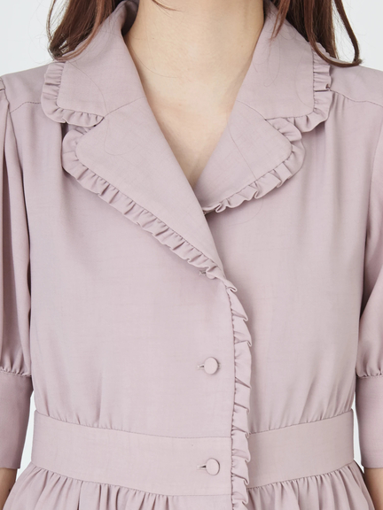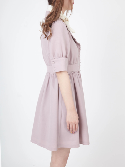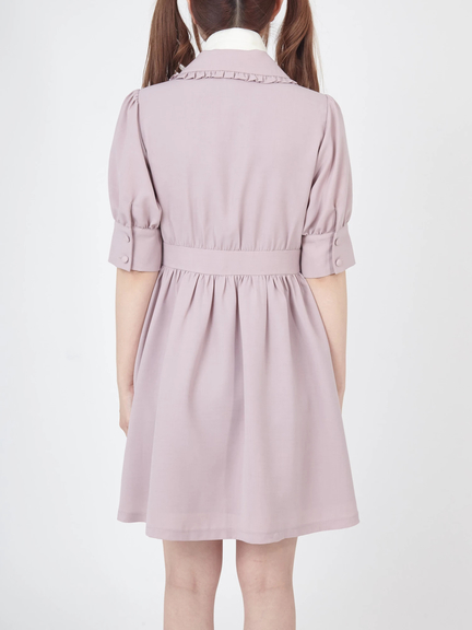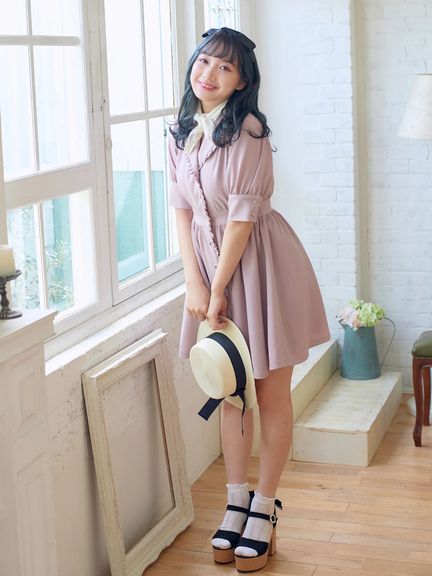 レーススカーフがアクセントになり、清楚なガーリースタイルを導くワンピースのお目見えです♪ シャツ風な前開きデザインで、きちんと感のあるルックスを叶え、お出かけはもちろん、デートやお呼ばれにもぴったりの一枚◎ 腰位置高めの切り替えに、ふんわりと広がるミニ丈が、スタイルアップを後押しします。フリルのアクセントも入り、上品な甘さをアピールするアイテムです。