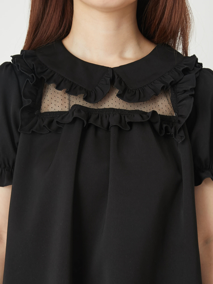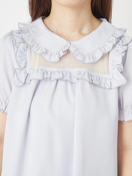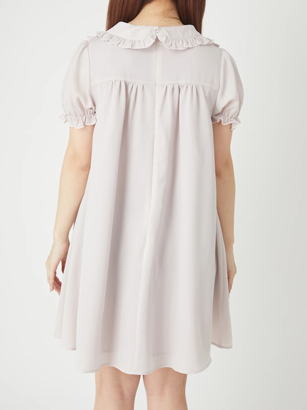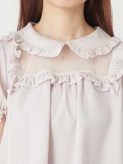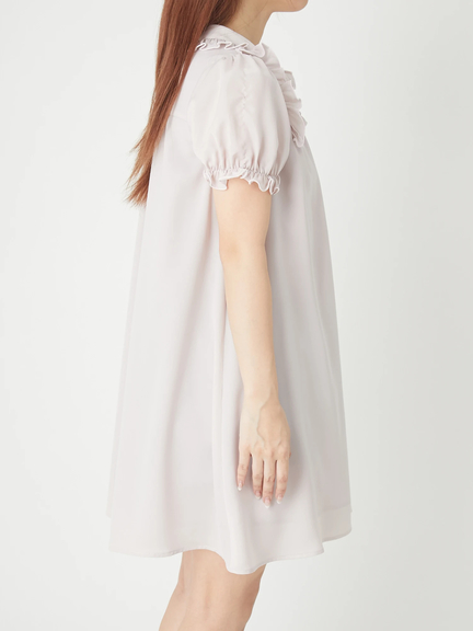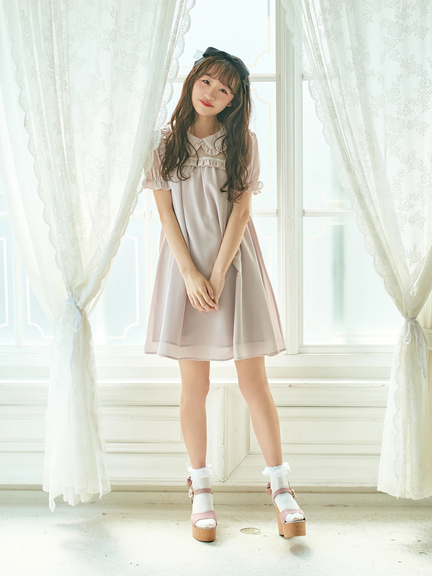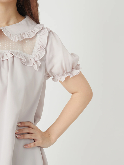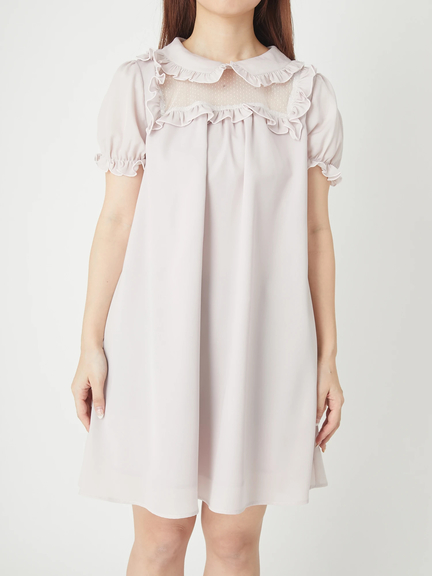 ドットチュールの切り替えが入り、キュートさMAXなベビードールワンピースの登場です♪ デコルテまわりは、透けたチュール素材が、ほどこされて、ドットの模様もデザインされて、顔まわりを華やかに、演出してくれます。胸元やスリーブには、フリルのあしらいもあり、可愛らしいディティールも、たくさんつまって◎ 身頃はほどよく、裾に向かって、ふんわりと広がるシルエットも、女の子らしさを倍増させます☆