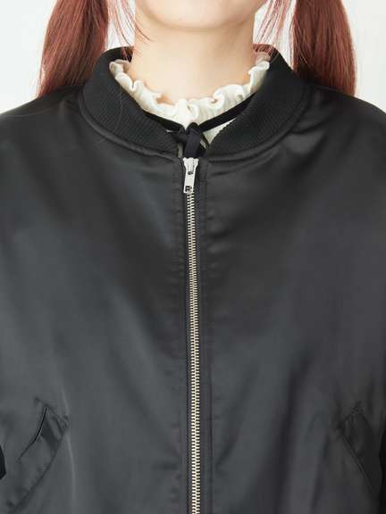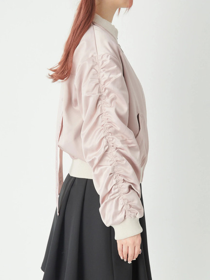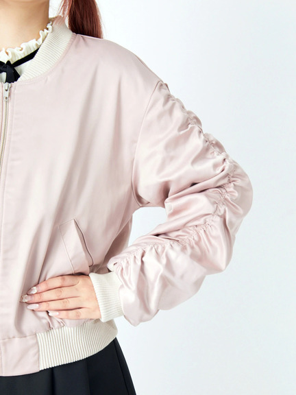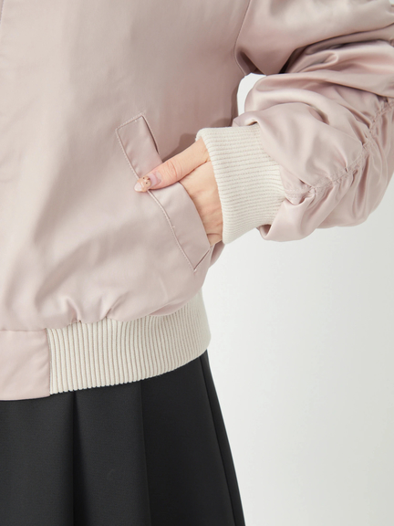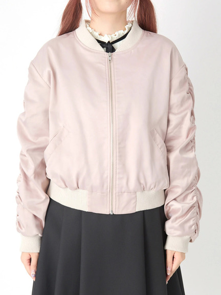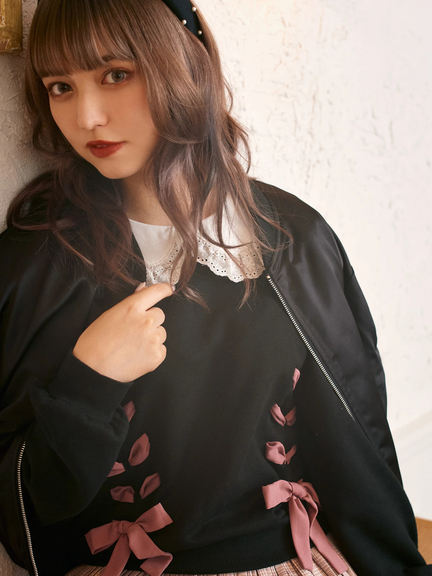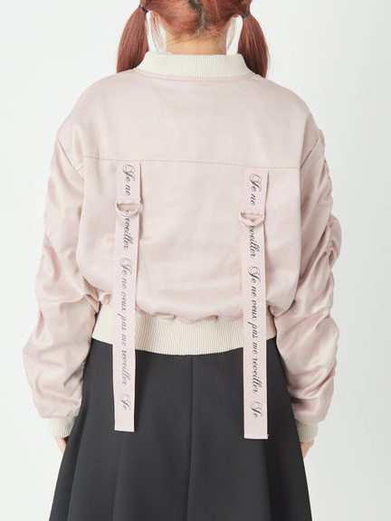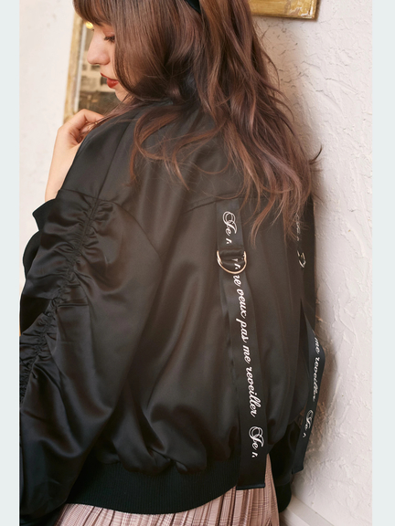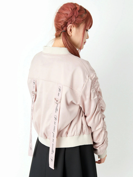 ロゴのアクセントが入り、バックシャンな着こなしが叶うブルゾンのお目見えです♪ 背中にあしらわれたロゴリボンが映えて、旬なガーリスタイルをメイク◎ 着丈はコンパクトで、腰高なルックスを演出し、ボディー全体をスタイルをよく見せてくれます。くしゅくしゅっとしたスリーブが甘く、愛らしさ高まるオススメの逸品です☆