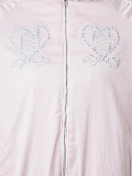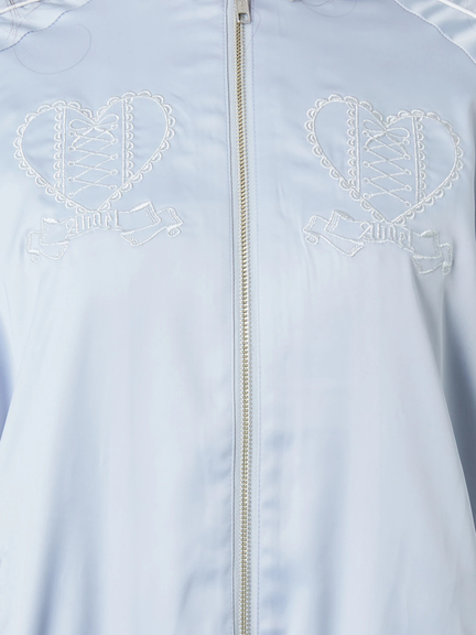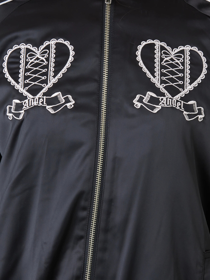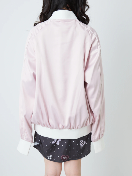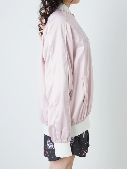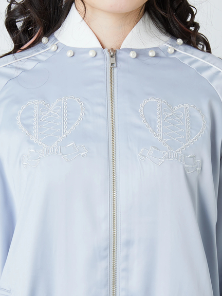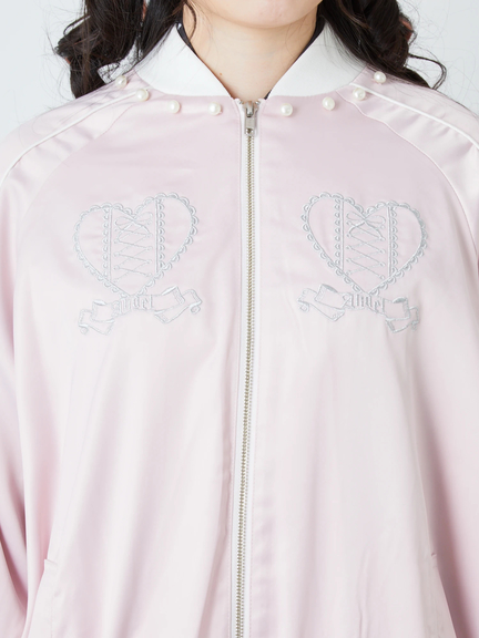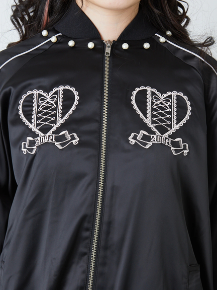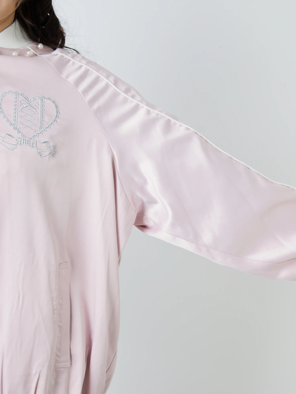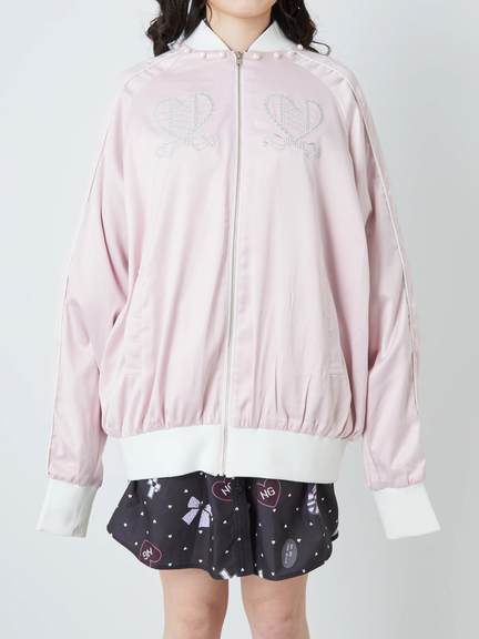これからのシーズンにぴったりのスカジャンが登場です♪ すっきりとしたラインのBigシルエットが、ほっそり見せを叶えて◎ フロントを開けても閉めてもスタイルがよくキマります。ネックラインにはパール、胸元にはハート刺しゅうがON! 大人のガーリー感を高め、マニッシュムードなスカジャンを、可愛くアップデートします☆