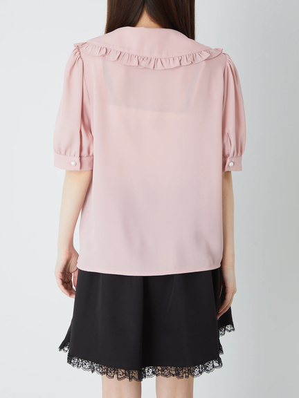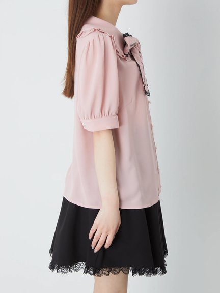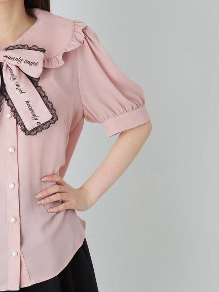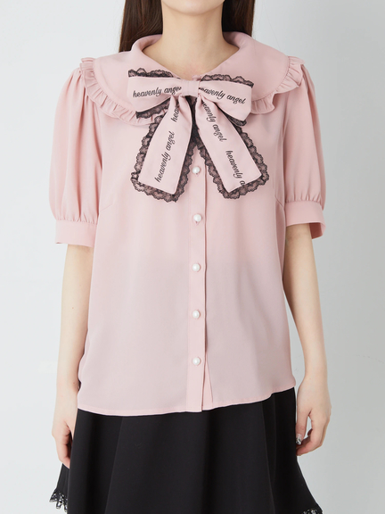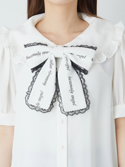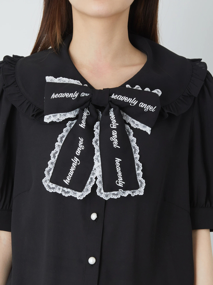 ロゴリボンがアクセントになって、お顔まわりを可愛くアップデートしてくれるブラウスです♪ ボリュームのあるデザインに、レースがあしらわれ、愛らしさがバツグン◎ ON&OFFできるので、その日の気分に合わせてスタイリグを楽しめます。フリル付きの衿&パフスリーブは、女の子らしいシルエットをメイクし、ほどよくゆとりのあるボディーラインで、華奢魅せも叶えます☆