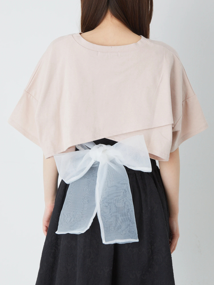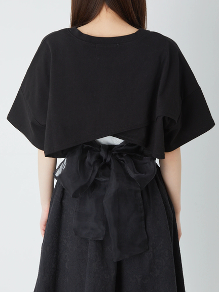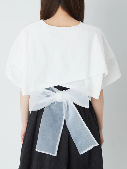 大胆なクロップド丈が可愛いトップスの登場です♪ 前後差のあるシルエットは、インナーが映えて、旬なレイヤードスタイルをメイクします。バックはカシュクール風なデザインになっていて、女の子らしく◎ チュールのリボンもプラスされ、バックシャンは着こなしを叶えます。どこから見てもキュートにキマるオススメのアイテムです☆