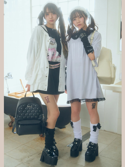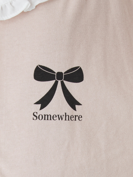 - 本体:綿100% リブ部分:綿95% ポリウレタン5% ジョーゼット:ポリエステル100% リボン:ポリエステル100% 刺繍部分:ポリエステル100%
