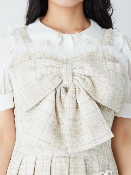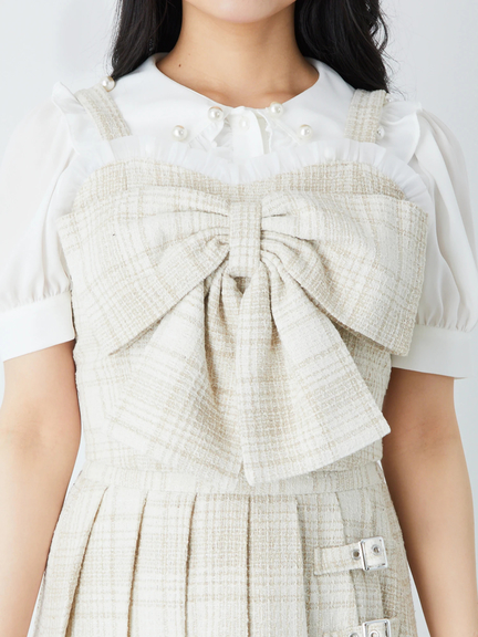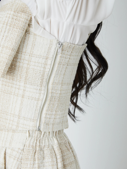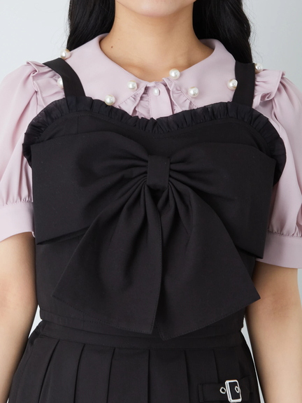 存在感バツグンのBigリボンが可愛いアクセントになって、ガーリー度が加速するビスチェの登場です♪ ほどよくタイトなシルエットで、女の子らしいメリハリ感をGET◎ ショート丈が、全体をバランスよく魅せ、テク不要で、脚長効果を発揮です。ハートカットに、フリルをプラスし、お顔まわりを華やかにアップデートしてくれます☆