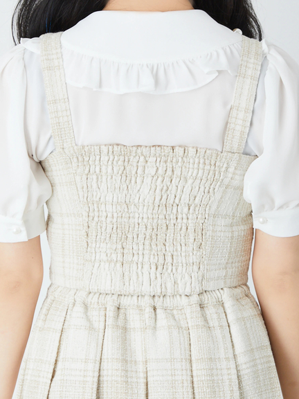 - (ツイード)表地:ポリエステル100% ソフトオーガンジー:ナイロン100% 裏地:ポリエステル100% (ブラック無地)表地:ポリエステル75% レーヨン20% ポリウレタン5% ソフトオーガンジー:ナイロン100% 裏地:ポリエステル100%