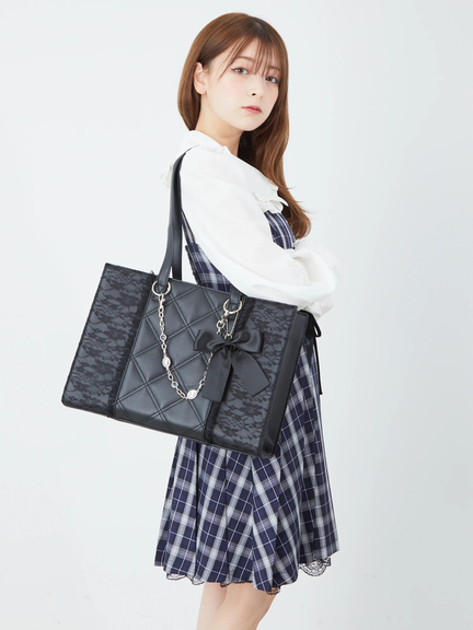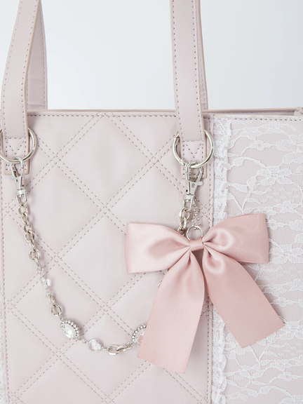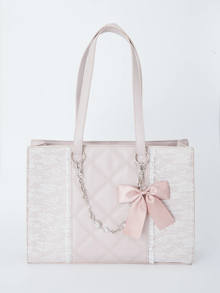 レース&キルティング加工で、ガーリームードが盛り上がるバッグの登場です♪ レースとキルティングのW使いで、クラス感&キュートな雰囲気になり、スタイリングをアップデートしてくれます。ビジュー付きのチェーンとリボンも備わり、可愛らしさMAX◎ A4サイズで、荷物の持ち運びに便利で、使い勝手もバツグンな逸品です☆