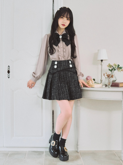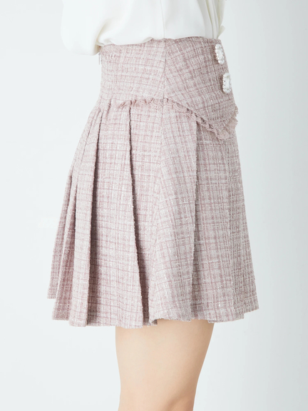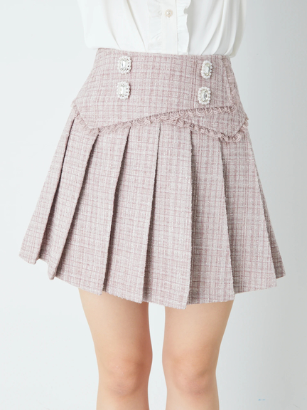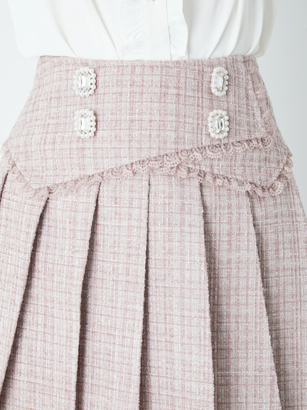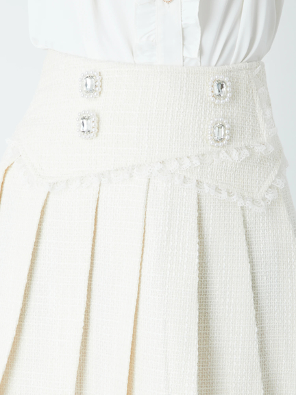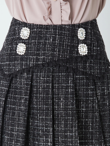 フロントビジューツイードプリーツSK