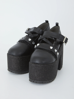 ダブルリボン&チェーンが付いて、ガーリーニュアンスが加速する厚底シューズのお目見えです♪ ボリュームのあるリボンが、並んでほどこされて、キュートにアップデートしてくれます。パールのチェーンには、ぽんぽんもプラスされて、好アクセントに◎ ソールが厚く、高さがありながら、安定感&歩きやすく、レッグラインをキレイに魅せてくれる逸品です☆