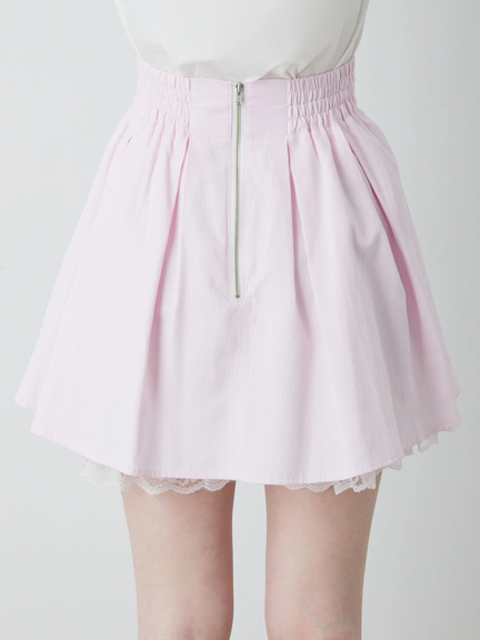 | M | 後ろゴム:61-72 | スカート:100 内パンツ:99 | 47(スカート部分のみ:40.5) | 内パンツ:37 | 内パンツ:9(裾レース5.5含む) | 内パンツ:75 | スカート:63.5 内パンツ:37.5 |
