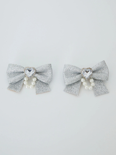 キラキラグリッターで、ガーリーな雰囲気が高まるリボンバレッタSetの登場です♪ キラキラ入りの生地やビジューが、デザインされて、きらびやかな印象になり、スタイリングをアップデートします。パールモチーフが、あしらわれて、クラスアップな印象を演出◎ ヘアにONすれば、好アクセントになり、アレンジがきいて、鮮度あふれるアイテムです☆