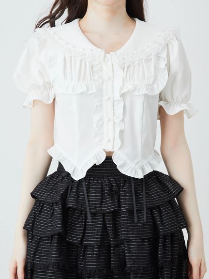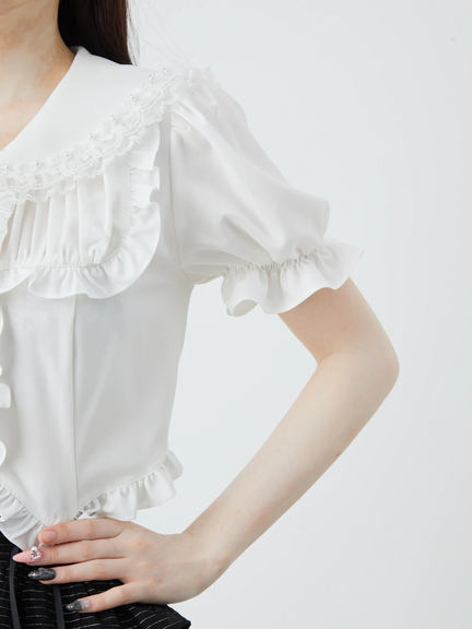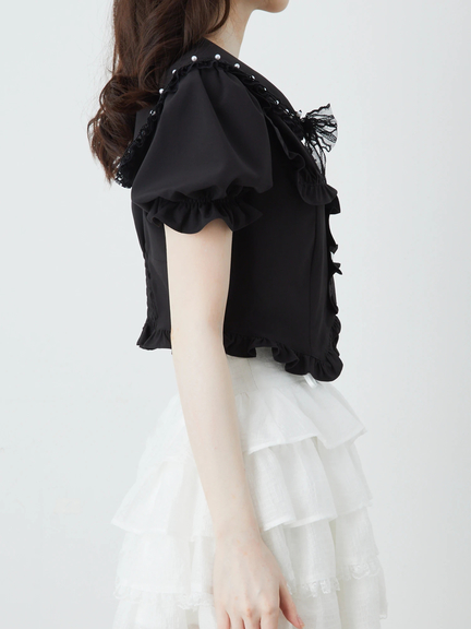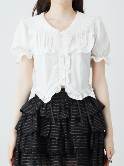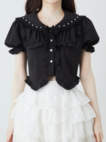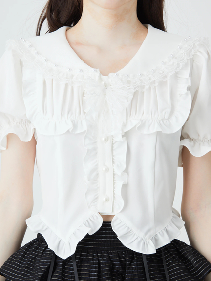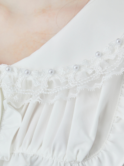 衿にリボンとパールのフリルがポイント。