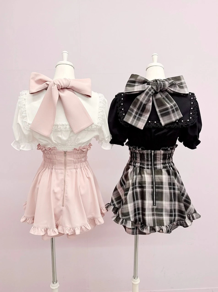 M | 84cm | 後ろ:37.5(裾フリル2.5含む) | 24cm | 35cm | 45.5cm | リボン:10.5 | リボン:10 | 後ろゴム:36-43 | 46cm |