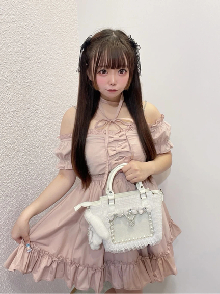 | M | 後ろゴム:74-84 | 16.5(上部フリル1.5含む) | 透明前下がり装着時:41-51 | ゴム:58-84 | 146cm | 透明前下がり装着時:74-83 | 首リボン:180 | 首リボン:1 前下がり:透明1 ビジュー | 透明:短12 長21 ビジュー:17 | 107cm |