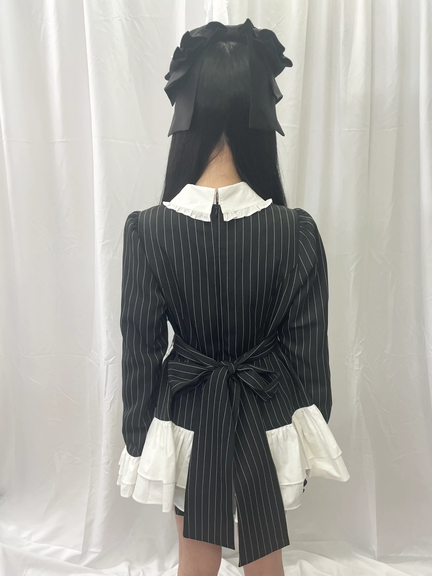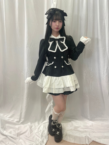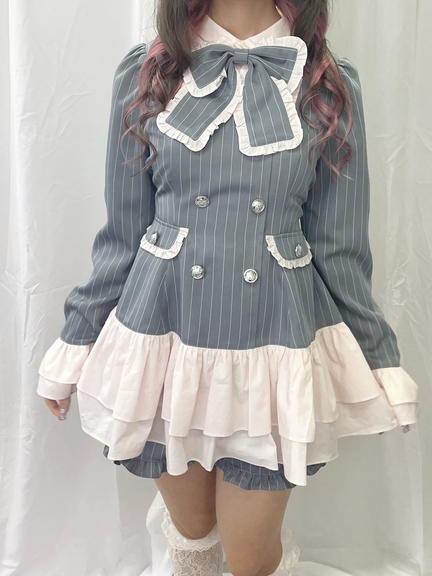 【ワンピース】着丈N.P∼ 70 肩幅 34 バスト 92 ウエスト(ゴム上がり) 68 裾周り264 総丈 64 袖丈+フリル巾 55+6/3 袖口 22 両脇リボン巾/長さ 5/12/90 【パンツ】 ウエスト(ゴム上がり) 58 ヒップ 108 股ぐり前/後 28/34 股下+フリル 6+2.5 わたり/裾巾 34.5/32.5 ウエストベルト巾 3.5寸法方法について