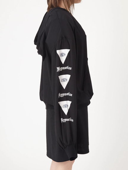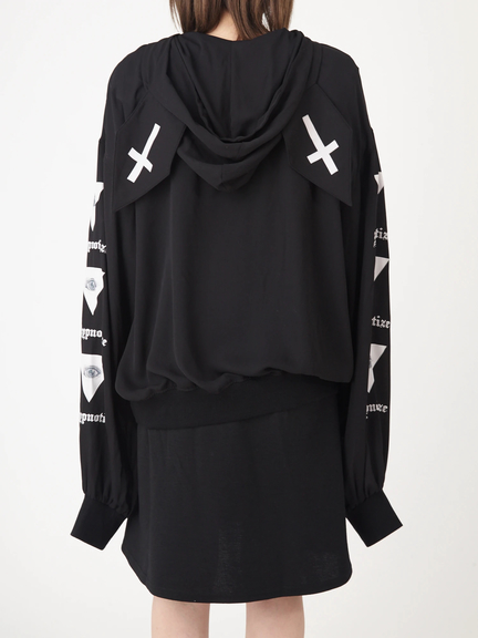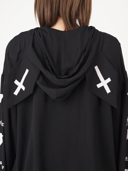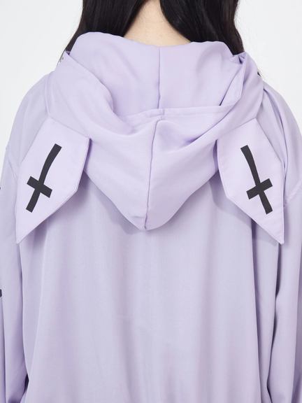 十字架をあしらった耳のアクセントで、ゴシックムードを盛り上げるパーカーのお目見えです♪ ゆるっとしたシルエットが、女の子らしい華奢感をメイク◎ フロントを開けても閉めても、スタイルよく決まります。ボリュームのあるスリーブが甘さをプラスしながら、エッジーなアクセントで、インパクト大! 存在感抜群で、まわりと差がつく逸品です。