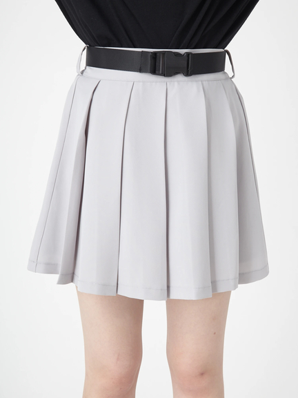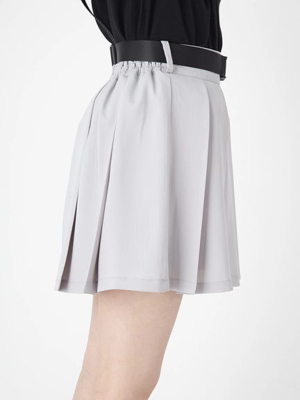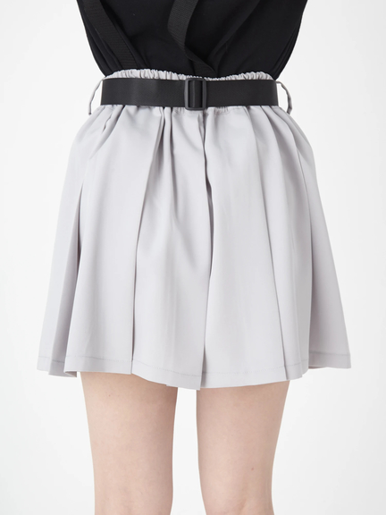 プリーツをあしらったガーリーなルックスが、乙女心をくすぐるスカパンの登場です♪ ミニ丈で揺れ動くシルエットながら、パンツなのでアクティブな日も安心◎ キュッと締まったウエストには、ベルトのアクセントがONされ、カジュアルなこなれ感をプラスします。ワントーンで他アイテムと合わせやすく、美脚が映える逸品です☆