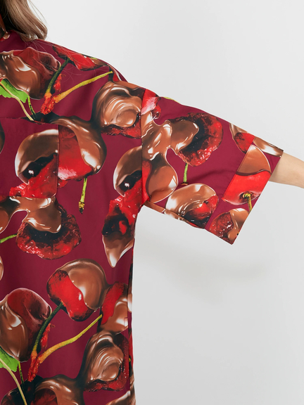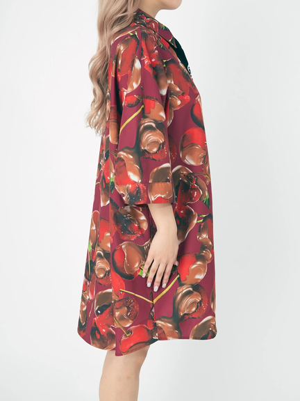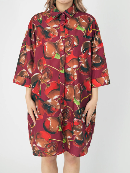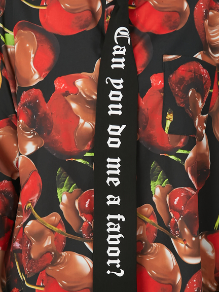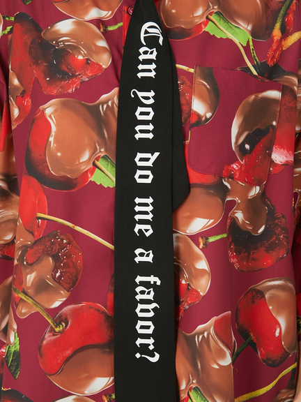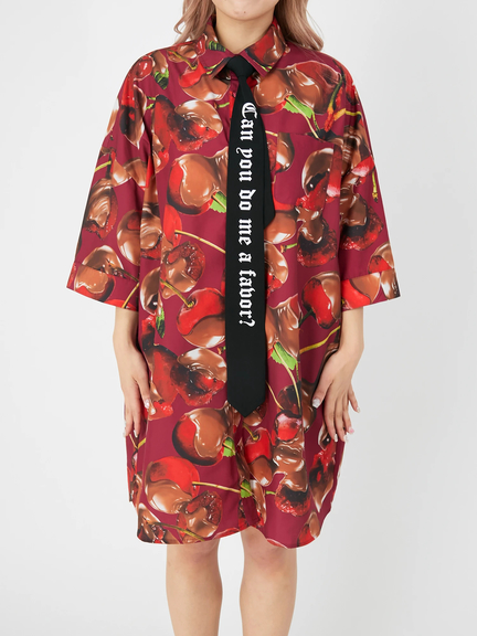 チョコレートチェリーの絵柄が入り、ガーリームードが盛り上がるネクタイBIGシャツの登場です! 全面にチョコレートチェリーのプリントがほどこされ、可愛らしさをアピールできて、スタイリングをアップデート◎ 長めのネクタイも付属し、英字ロゴのあしらいが、スパイスをONします。大きめのサイズ感で、ゆったりとして、一枚着風に着こなせば、キュートさMAX☆