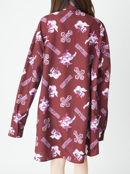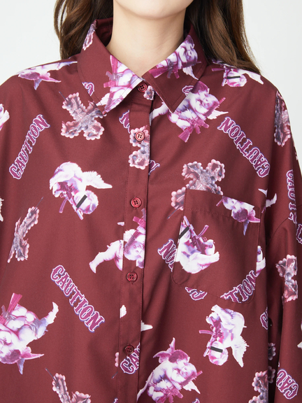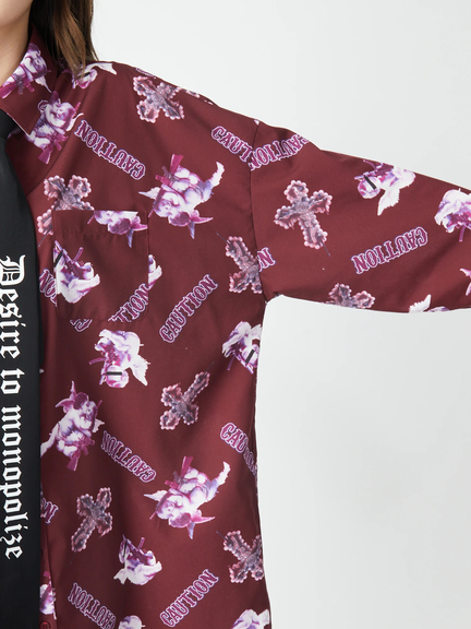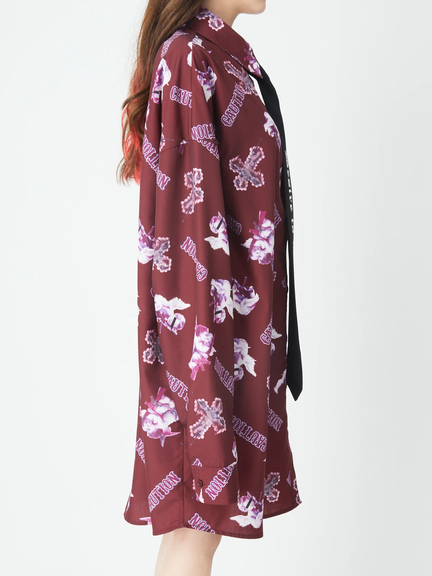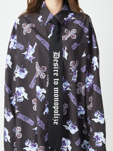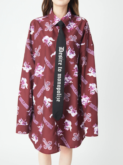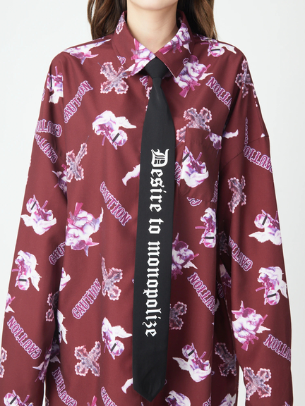 エンジェルプリントが入り、ガーリームードが盛り上がるBIgシャツの登場です♪ 全面にほどこされたプリントが、可愛らしく、女の子らしさが演出でます。付属のネクタイには、英字ロゴがデザインされて、好アクセントに◎ 大きめのシルエットに、スリーブが長く、甘いニュアンスが加速します。旬&ゴシックな雰囲気を楽しめる注目アイテムです☆