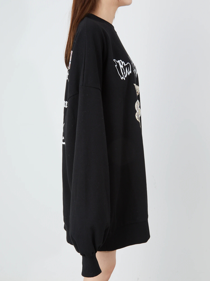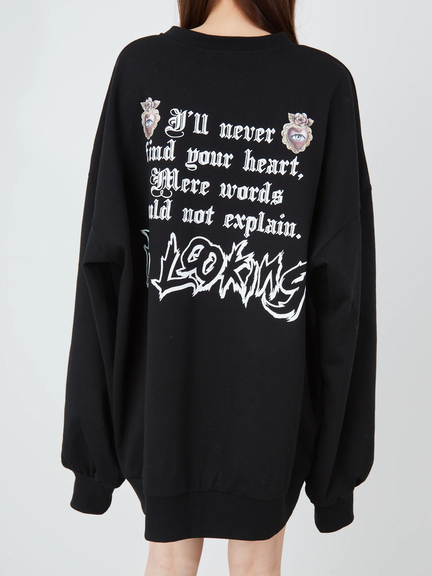 ゴシックモチーフプリントで、MIXカジュアルな雰囲気が楽しめるプルオーバーの登場です♪ フロントとバックには、英字ロゴなどのプリントがほどこされて、スパイシー&カジュアルなテイストを演出してくれます。着丈は長めの設計で、身頃もゆったりとして、抜け感が可愛らしく◎ スリーブもたっぷりとして、甘いニュアンスをプラスしてくれます☆