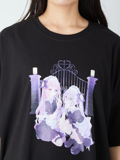 ツインガールのプリントがONされて、ゴシック&ガーリーな雰囲気が叶うビッグTシャツの登場です♪ フロントには、大きなプリントがほどこされて、好アクセントになり、スタイリングに鮮度をプラスします。スリーブもたっぷりとした大きめのシルエットが、可愛らしさを加速させて◎ これからのシーズンに、一枚着風に着こなせば、女の子らしさが倍増します☆