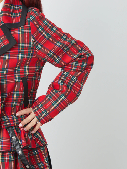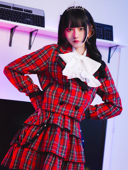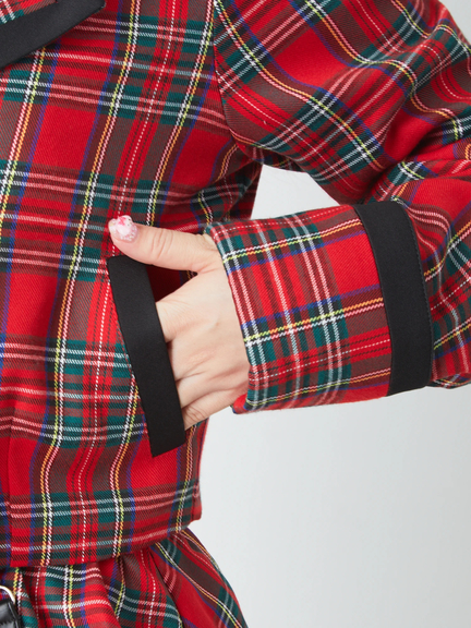 ハートボタンが付いて、ゴシック&ガーリーな雰囲気を叶えるジャケットの登場です♪ フロントには、ハート型のボタンが、ほどこされて、可愛らしく、スタイリングの好アクセントとして、映えます。開襟デザインで、首元がすっきりと魅せられて◎ スリーブは、長い設計に、身頃はショート丈のシルエットで、鮮度が高まる一着です★