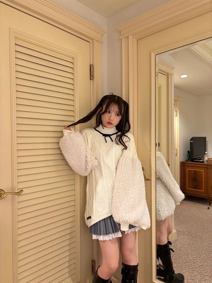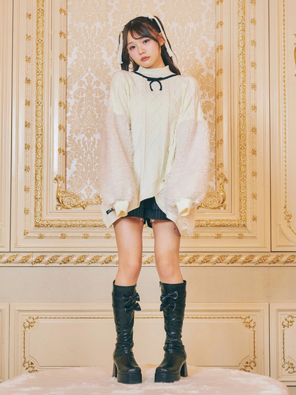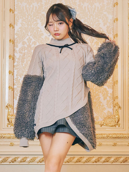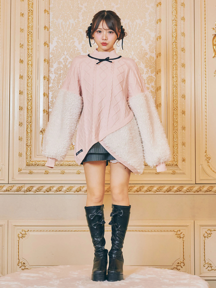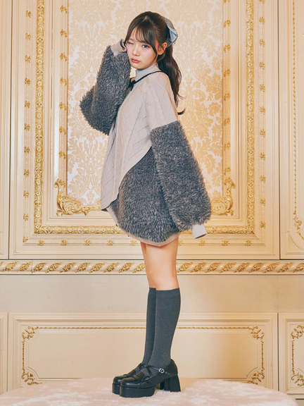 袖はボリュームがでるデザイン+ボア素材で可愛らしい雰囲気に。