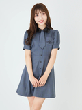 合皮衿タイ付きワンピース
