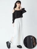 レースが見えるワイドパンツ